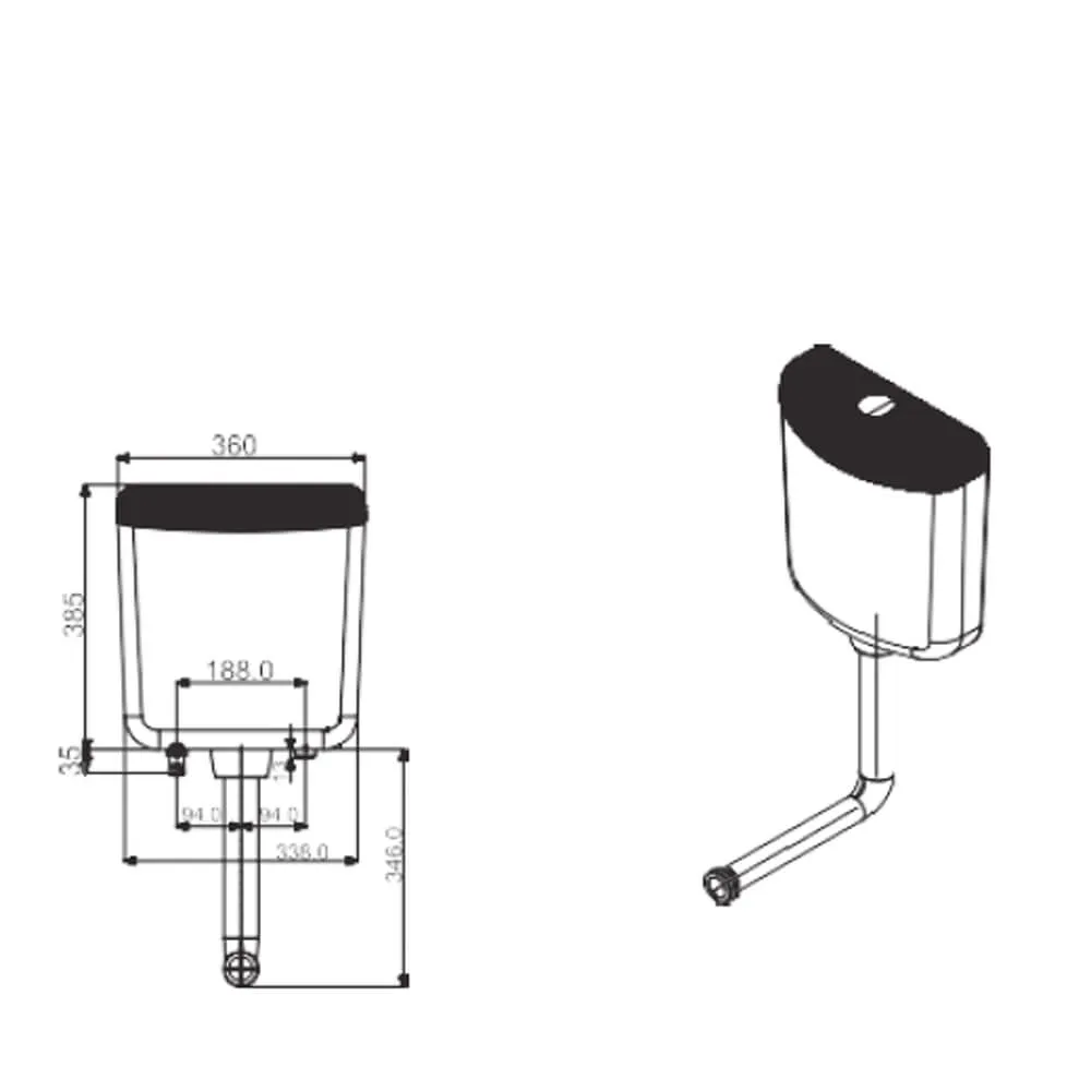 Essco ESH-WHT-184NBTL — это настенный бачок с белым корпусом и контрастной чёрной крышкой, предназначенный для установки с напольными унитазами (EWC). Модель укомплектована всем необходимым для монтажа и обеспечивает надёжную работу системы смыва.
