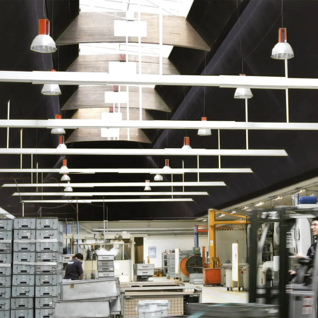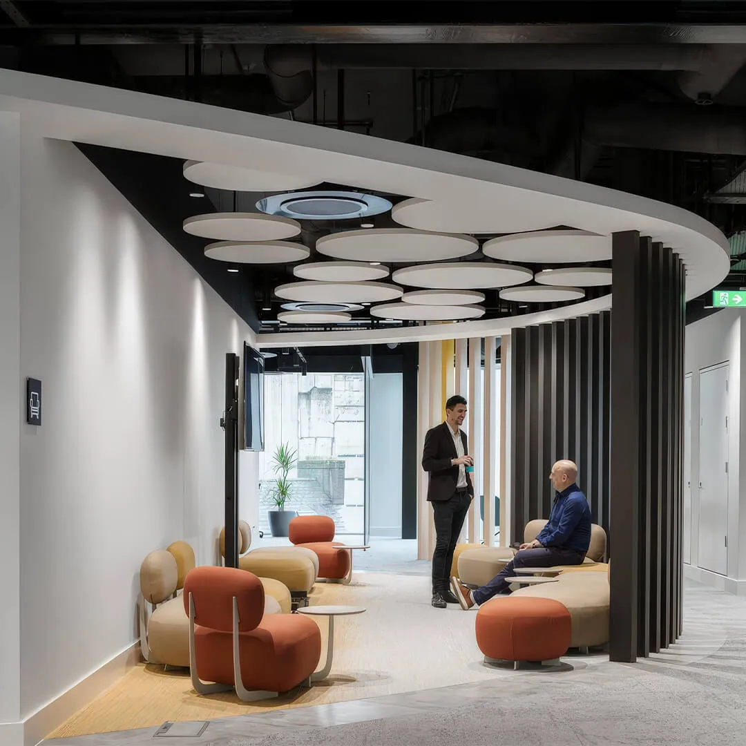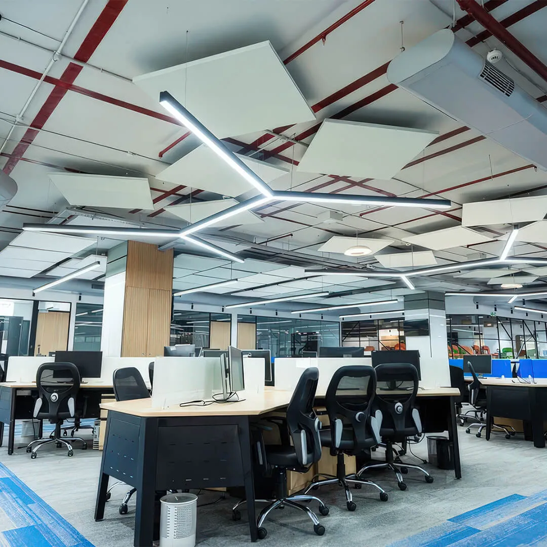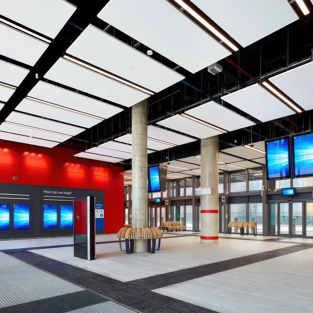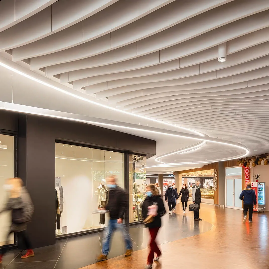 • Системы для открытых пространств: подвесные панели и облака, которые эффективно снижают шум в больших помещениях.